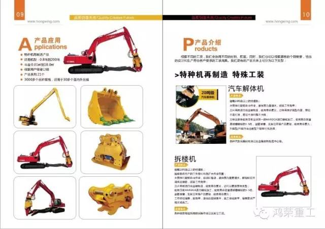 鴻榮重工的產(chǎn)品現(xiàn)分為特種機再制造、特殊工裝以及工程機械的工裝屬具。?其中特種機再制造及特殊工裝包括:再制造二手挖掘機整機,使用大型特殊工裝如:加長臂,三節(jié)臂,巖石臂,液壓破碎剪,汽車拆解剪,伸縮臂等使挖掘機功能得到進一步提升,適用工況包括各種汽車拆解回收中心,金屬廢料處理中心;噪音要求嚴格的樓房及高層建筑拆除工地;基坑,陡坡挖掘;地鐵,隧道挖掘;基礎深挖,深坑或者高空作業(yè);溝渠清淤,河道疏通;中風化石,強風化巖石惡劣條件的挖掘施工等。